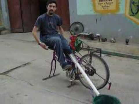 Pedal powered electric generator which we wrote about before. The bike generator in this video isn't a Maya Pedal model but similar